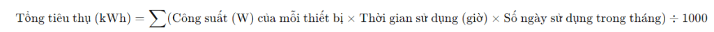 Từ những thông số trên, bạn có thể áp dụng công thức để xác định tổng mức tiêu thụ điện cho gia đình mình.